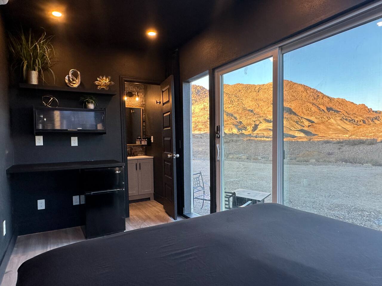 Each unit is thoughtfully designed with a convenient kitchenette space featuring a mini fridge, ideal for preparing light meals and snacks. After a day of adventure, guests can refresh in their full bathroom before unwinding in their private sitting area, complete with a cozy propane fire pit. Moreover, our hotel-quality queen beds provide an unmatched opportunity to marvel at the stars all night through giant windows and a skylight, offering a truly magical experience. Although our off-grid nature escape offers a peaceful retreat from the digital world, we also provide Wi-Fi throughout the property for your convenience should you choose to stay connected. We are less than 20 minutes to both Big Bend National Park and Terlingua Ghost Town, but tucked away from heavily traveled roads and highways. Our property offers the perfect blend of proximity to local attractions without the disruption of noise or traffic. Embrace the off-grid charm alongside modern amenities, making it an ideal destination for those seeking a serene retreat in the heart of nature. Like most properties on dirt roads in the area, heavy rains can make the roads difficult for travel/impassable for hours to days. There are a few dry creek crossings that can occasionally flash flood, but they usually clear within a few hours after the rain. Although rain in the desert is rare, if there is moderate rain, we simply ask that guests wait until it has passed and roads are clear before traveling. If we anticipate severe rain during your stay, we will contact you to discuss options. We also have other nearby accomodations that are shown in the photos and available to rent. Please let us know if you would like to book more than one unit for additional discounts.